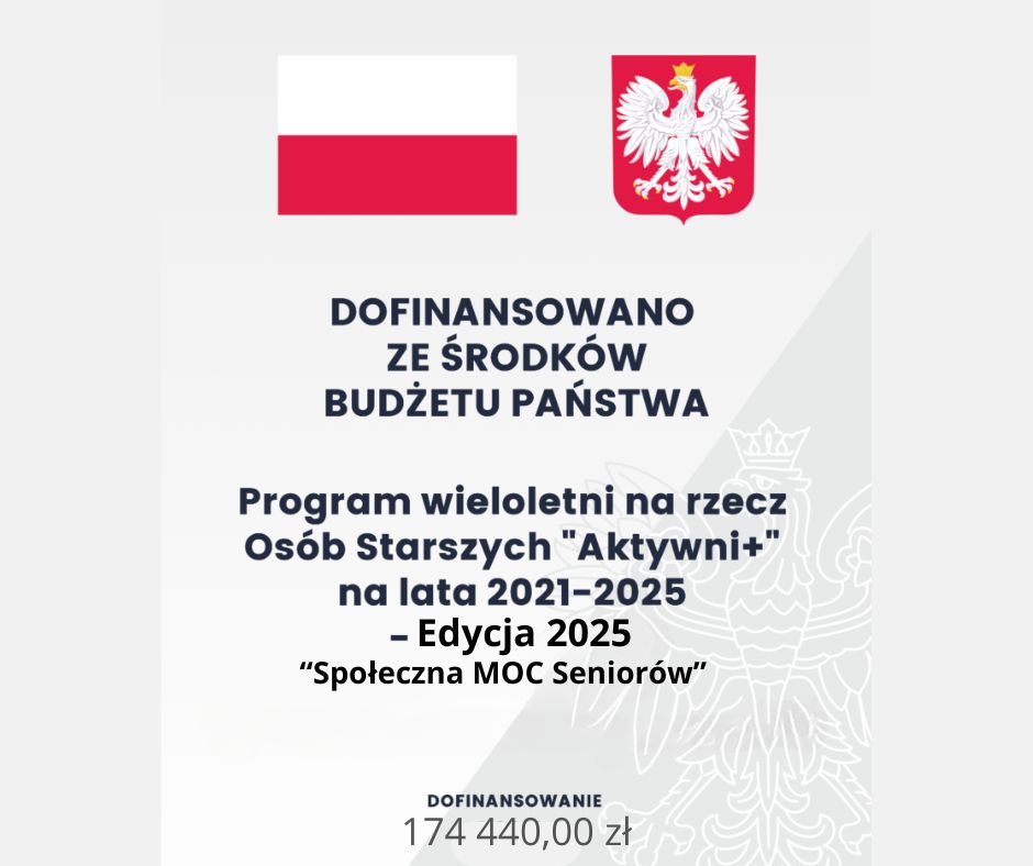 Projekt dofinansowany ze środków rządowego programu wieloletniego na rzecz Osób Starszych „Aktywni+” na lata 2021-2025. Edycja 2025.